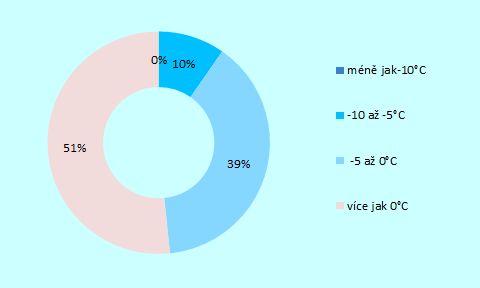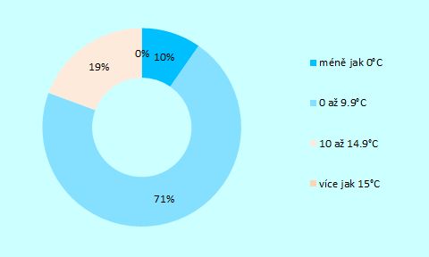 | maximální teplota | 4,9 °C (v 10:40) | minimální teplota | -1,3 °C (v 20:00) | teplotní rozsah | 6,2 °C | nejnižší chlad větru | -1,5 °C |