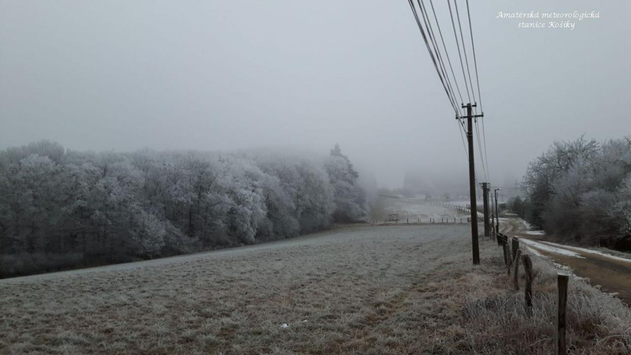 Dnešního dne byla zaznamenána mrznoucí mlha a ráno i slabé mrholení, které se postupně nabalovalo na stromy.